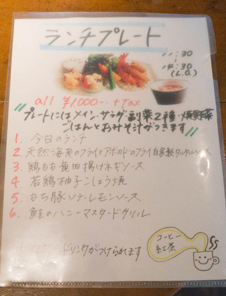 ランチメニューはこんな感じ。+250円でドリンクが付いてくるようです。