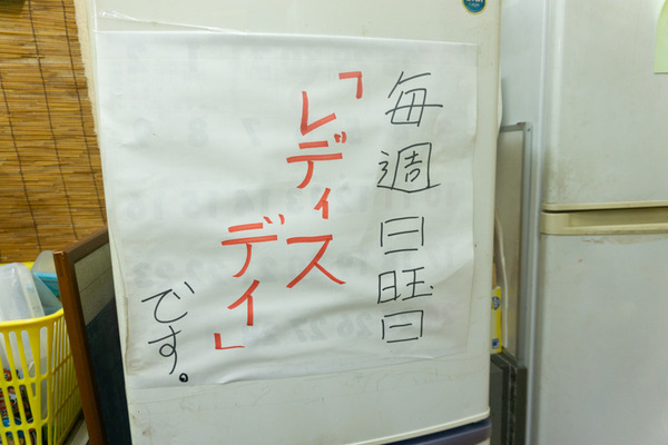 あぁ〜これは、毎週日曜日をレディースデーにしてて、女性は最初の1杯は無料ってサービスしてるねん。