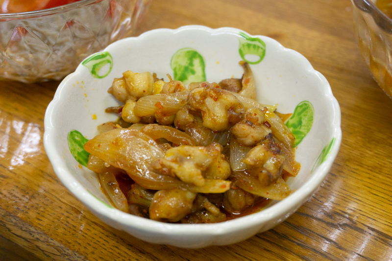 鶏なんこつと玉ねぎを炒めて、生のクミンがはいってる料理ね!