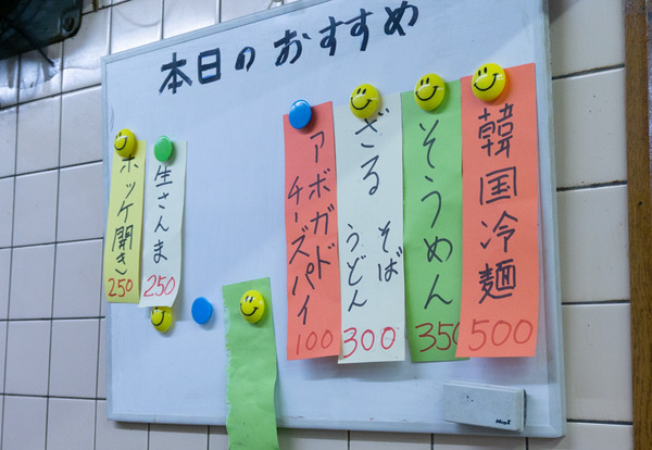 本日のおすすめ。夏場なので麺系の料理が多めなのでしょうか。