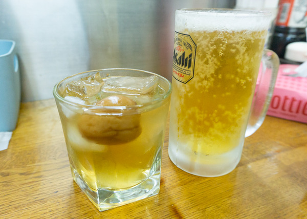 左:ウメ酒(350円税込) 右:生ビール小(350円税込)