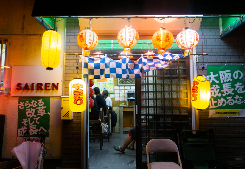 外から見たお店の風景。提灯のやさしい光と中から笑い声が聞こえてきます。