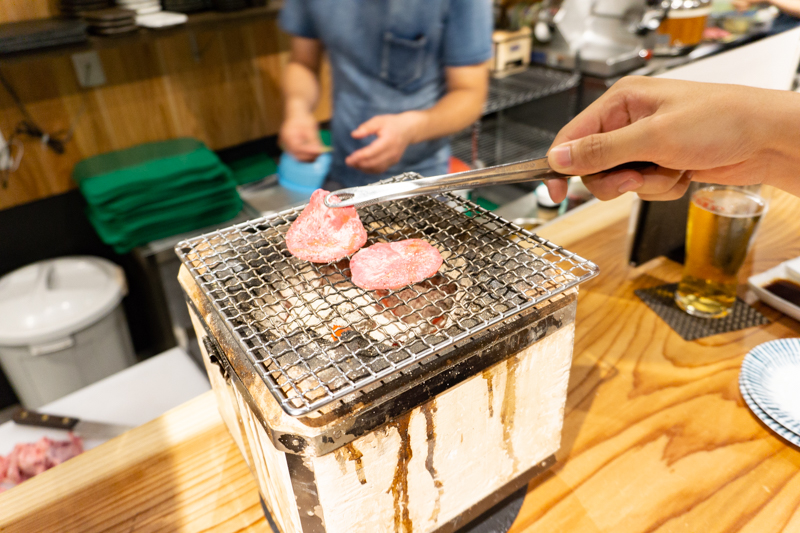このパチパチと肉が焼ける音を聞きながら、網を見つめている時間がたまんなく良いんですよねえ…。