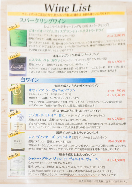 (ちょっとぶれてすみません。ワインメニューその2)