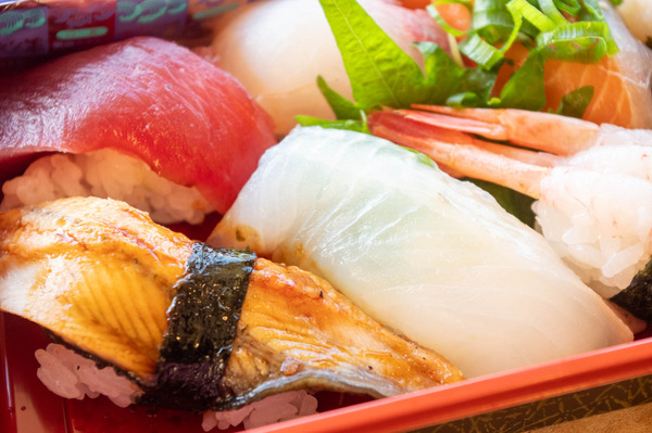 マグロ・ハマチ・甘えび・ほたて・うなぎ・たい・サーモン・いくらといった濃いメンツ。