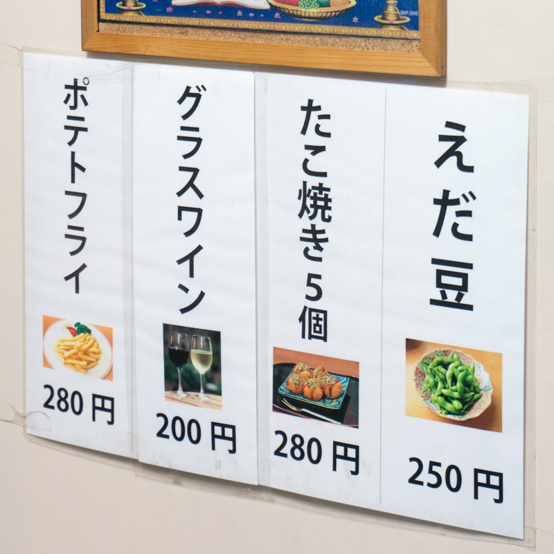 食事を終えて店内をみていたら、壁に貼られているメニューに「たこ焼き」があったのが個人的にめっちゃ気になりました。笑