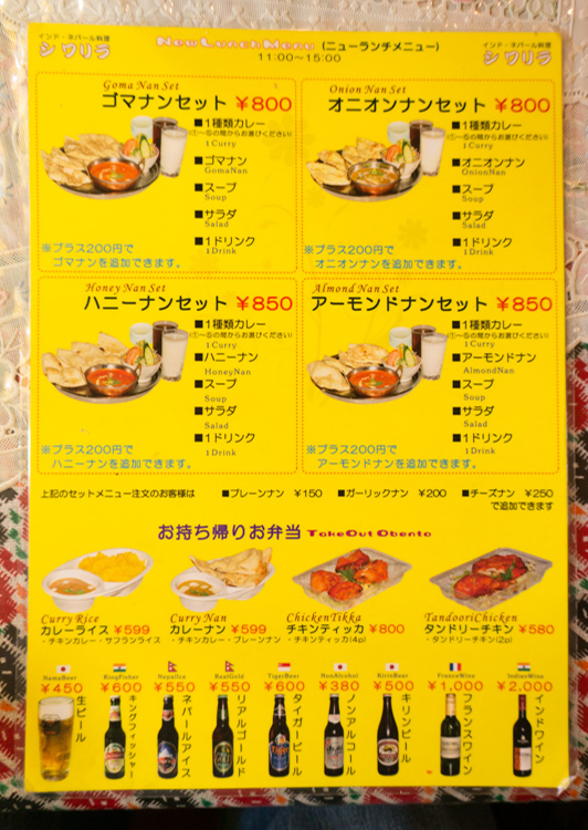 チキンカレー・キーマカレー・野菜カレー・ダルカレー)から選べ、