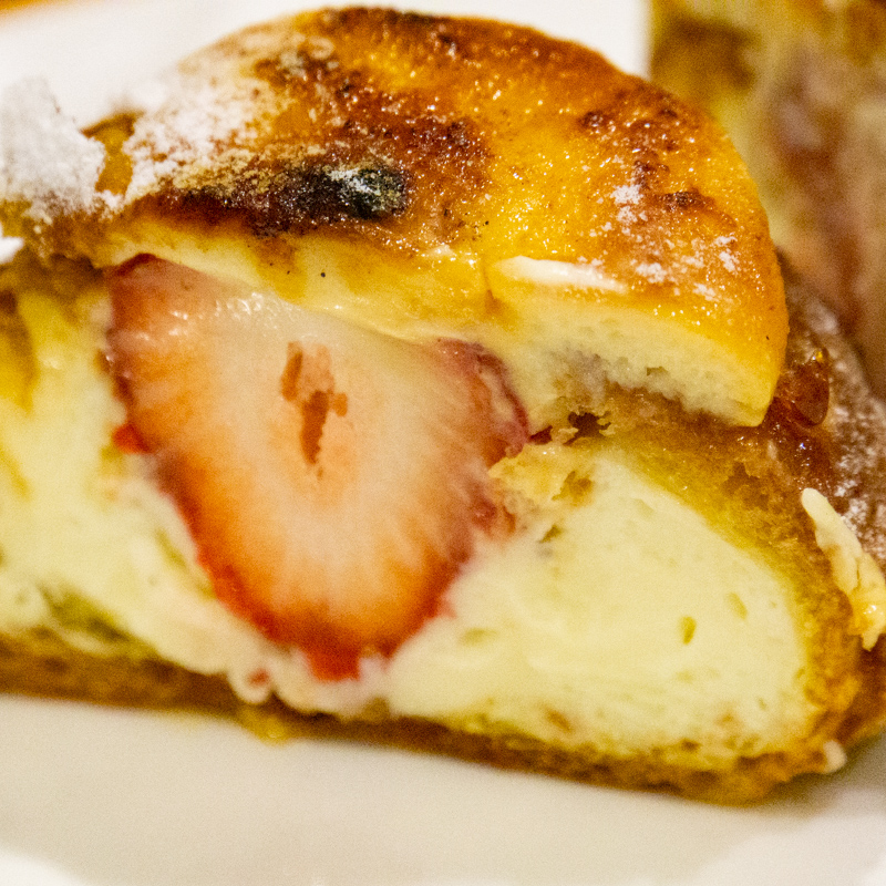 カスタード好きにはたまらんです。いちごの甘酸っぱさとかもいい役割を果たしているんですけど、このカスタードのとろっと感や甘さが絶妙!カラメルのほろ苦さもええ仕事してます。