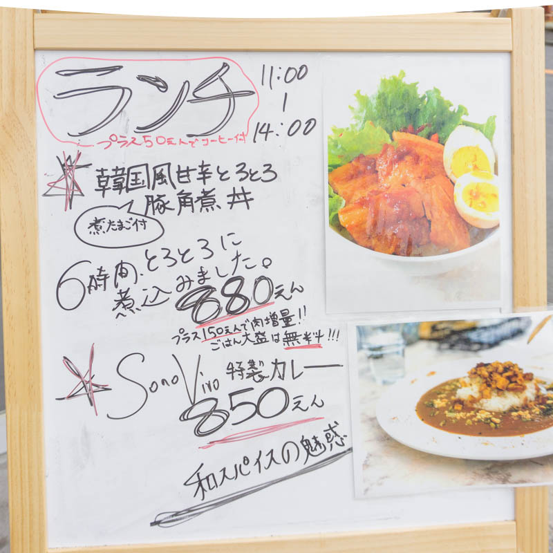 カレーは表の看板に「和スパイスの魅惑」と書いてあるとおり、山椒の効いたクセになる独特の辛さ!