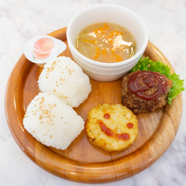 子どもがちょうど食べ切れる量で、手作りやわらかハンバーグにお野菜たっぷりのおみそ汁がうれしい![]()