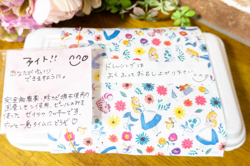 こんなステキな包み紙に手書きメッセージ&おやつまでつけてくれます。