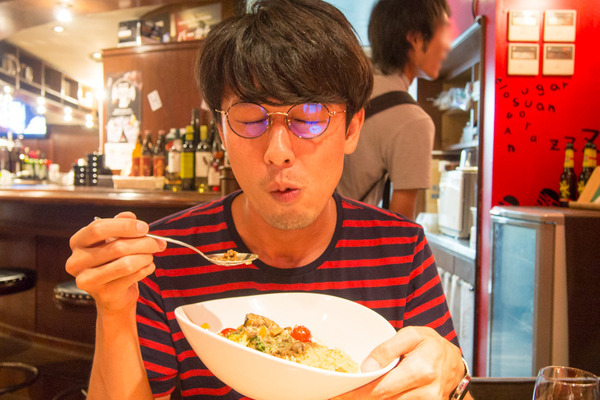 「このお店、結構がっつり系のメニューもあるんだよ。」