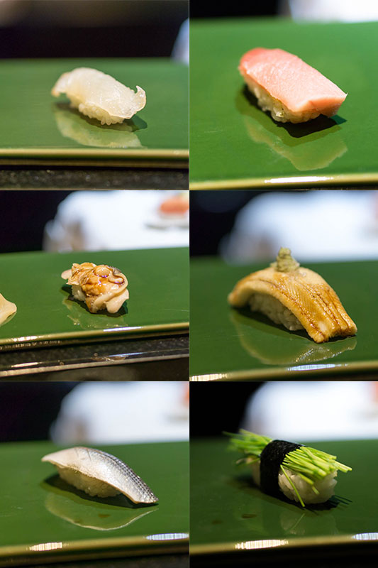 付き出し、お造りなどに、にぎりにお椀、デザートといった構成です。
