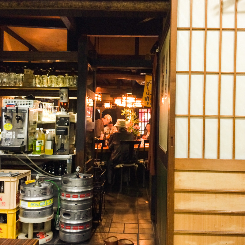店内は、手前にカウンター席と調理場、奥に座敷があります。歴史ある建物で、昔ながらの素敵な雰囲気でした。以前ご紹介した、光善寺の「たぬきばやし」に似ている雰囲気。