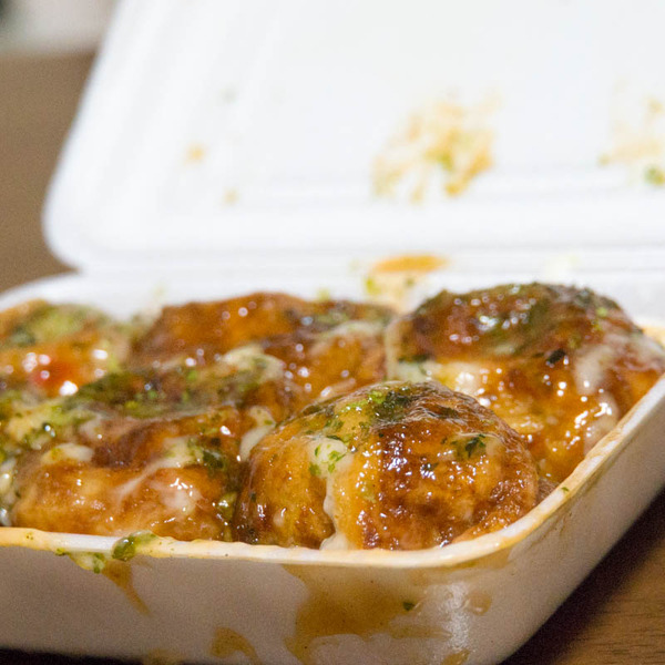 のたこ焼き6個、ソース味(350円税込)です。