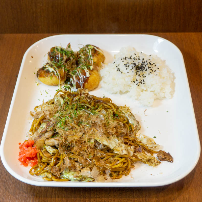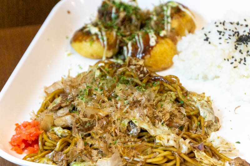 たこ焼きは外カリッ中トロッ!焼きそばはソースが良く絡まっていて王道の美味しさ。