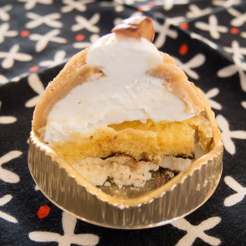 早速半分に切ってみると、土台部分がなかなか切れない!何で!?と思ったらメレンゲを焼き上げたもの(ムラングディスクというらしい)が土台に使われていました。珍しい![]()