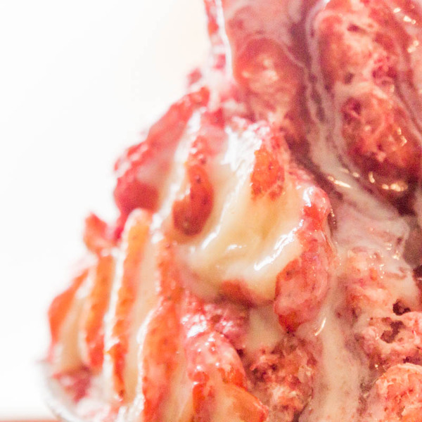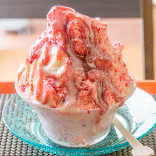 いつもどおりかき氷を食べようとおもった口で食べると違和感を覚えるほどのふわふわなんです。例えとしてはおかしいですが、お菓子のわたパチみたいな食感。