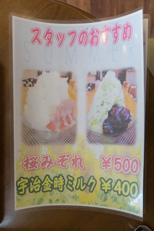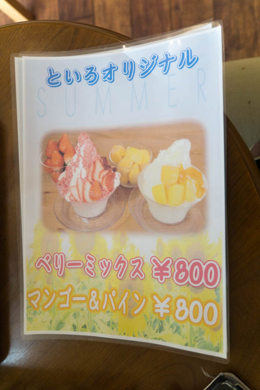 メニュー。枚方凍氷の氷を使ったかき氷もありますが、今回はこちらのメニューのといろオリジナルかき氷をチョイス(もうひとつのメニューもあります)