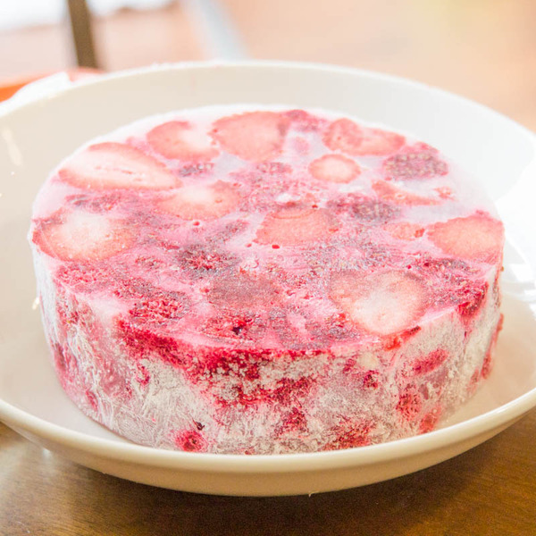 それがもう面白すぎて、かき氷が進むんですが、やや溶けてくると凍らされてた果実が溶け出して、糖度があがってきてシロップ無しでも食べられるんです。