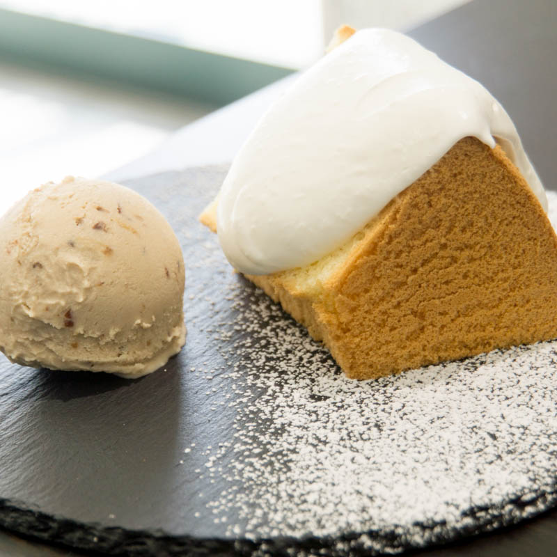 デザートは栗のアイスとシフォンケーキで、いろんな組み合わせで食べられてハッピー!