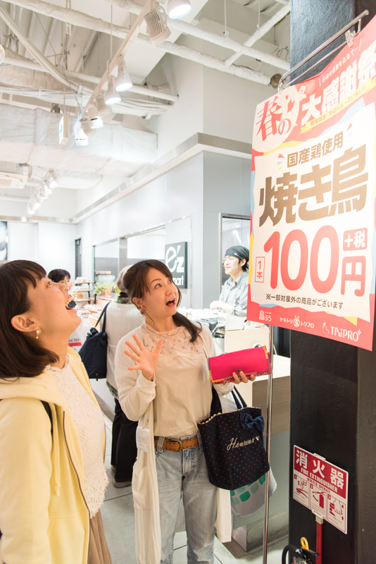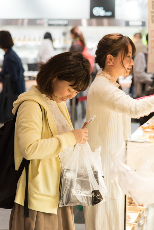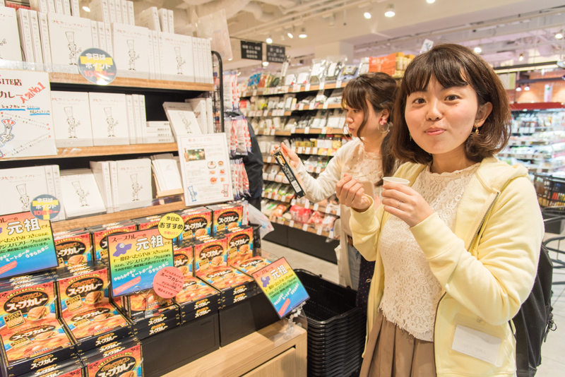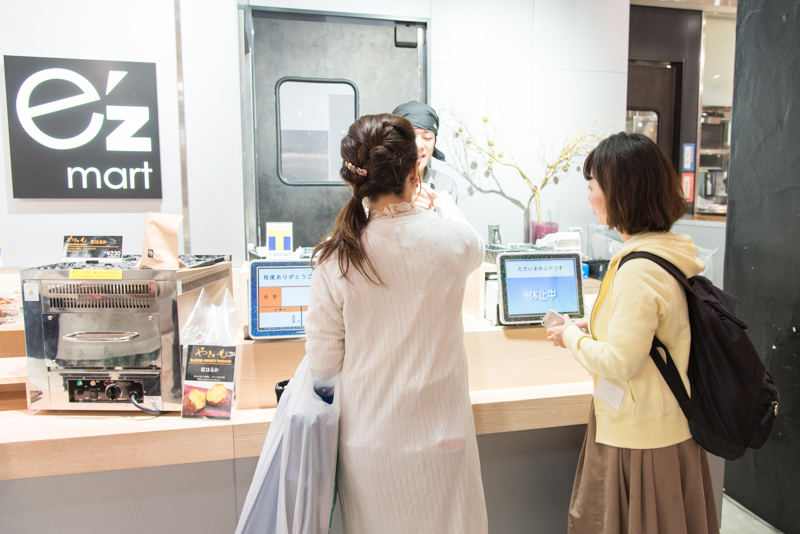 「まずはエスカレーター下りてすぐ、『e’z mart』でのお買い物をお願いしますー!」