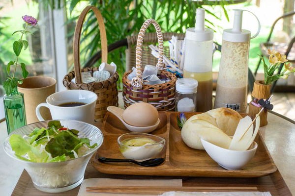 モーニングのAセットは食パン、Bセットは玄米生地 白パン。