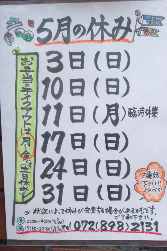 お店の方によると、夜のお持ち帰りは当分続けるとのことでしたが、お昼のテイクアウトはそろそろやめるそうです。