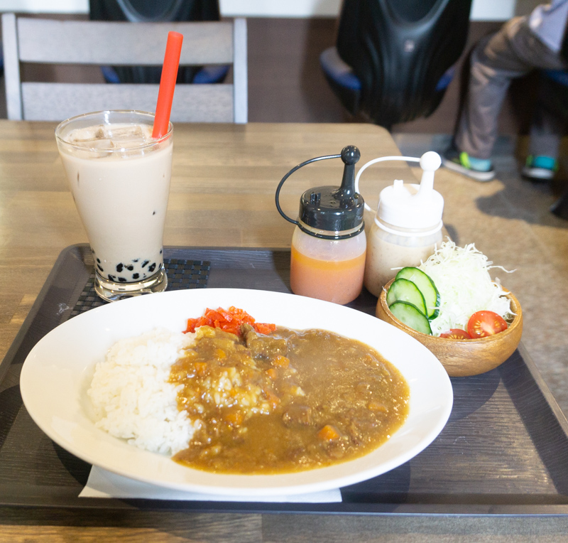 牛すじカレーとタピオカミルクティーの組み合わせ、ちょっと贅沢気分。