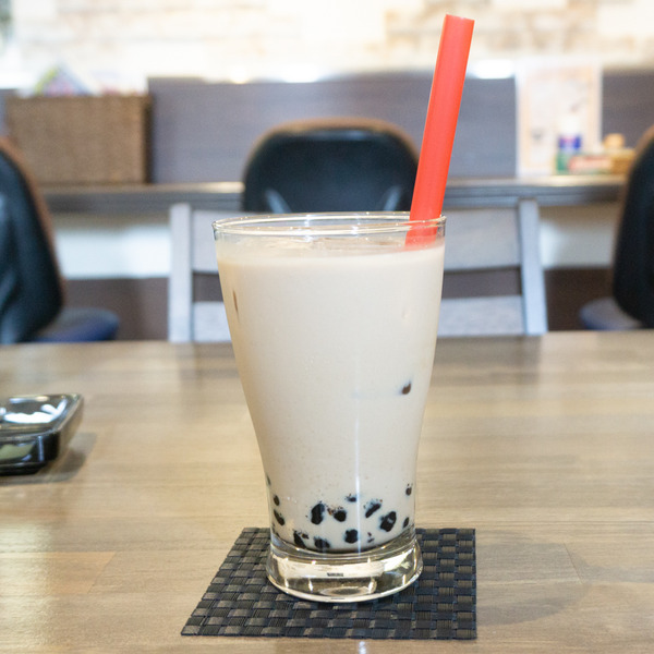 タピオカミルクティーはモチモチのタピオカがたっぷり。