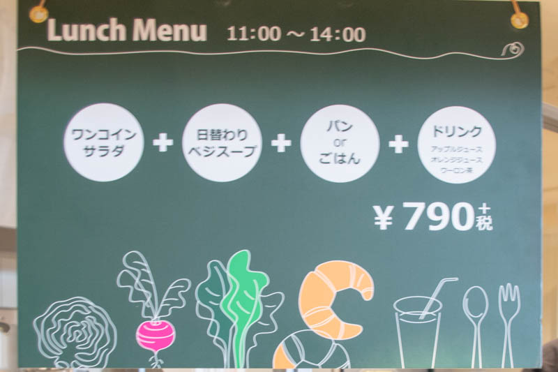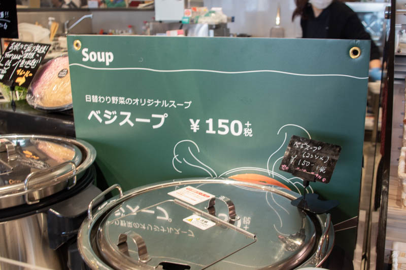 日替わりベジスープ(150円税抜)、コインボウル(500円税抜)。