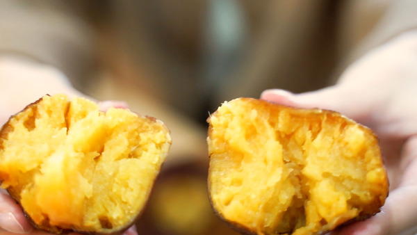 ええ感じの色のやきいも。壺焼きだと時間がかかるんですが、水分が飛びづらくなってしっとりするんだとか!