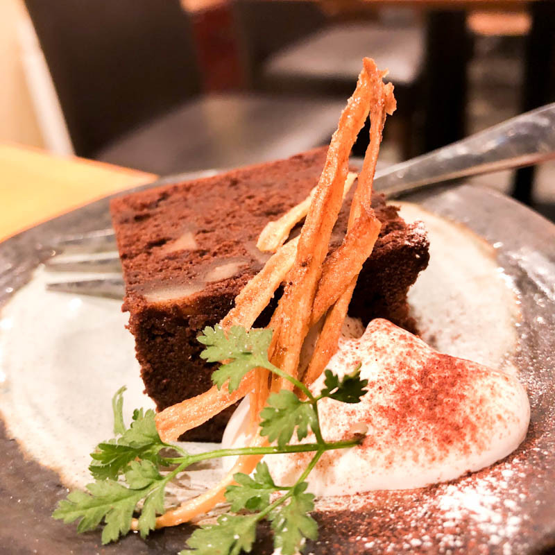 食後のデザートに“ごぼうのブラウニー”が出てきました☆