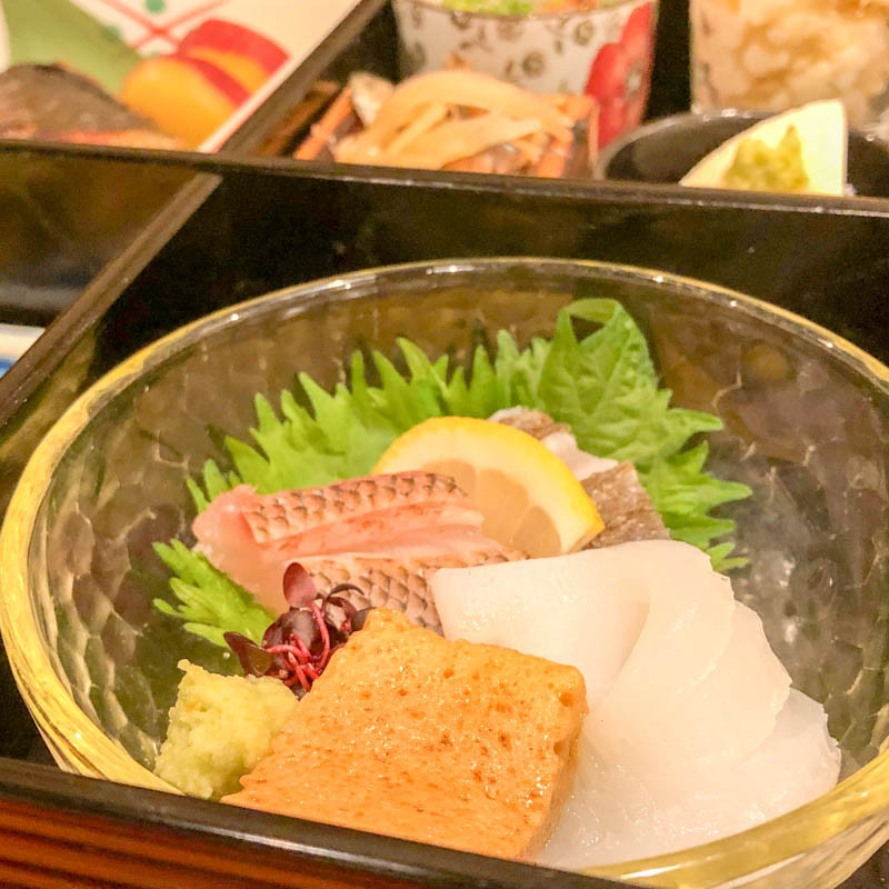 イカのお造りの隣にたたずむ豆腐のようなお揚げのようなオレンジ色のモノの正体は…