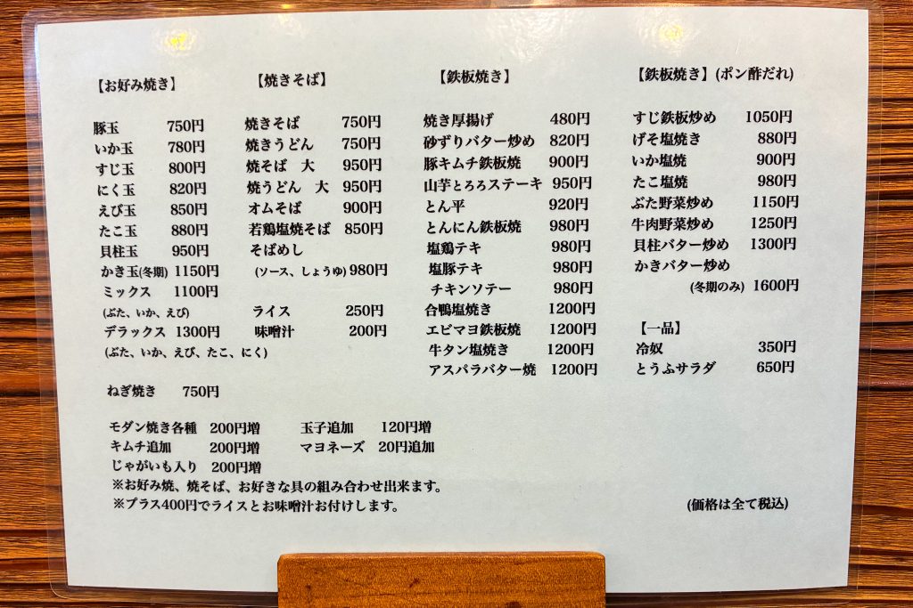 たくさんあって悩みましたが、「豚玉(750円)」に「モダン焼き(200円)」トッピングをチョイス!