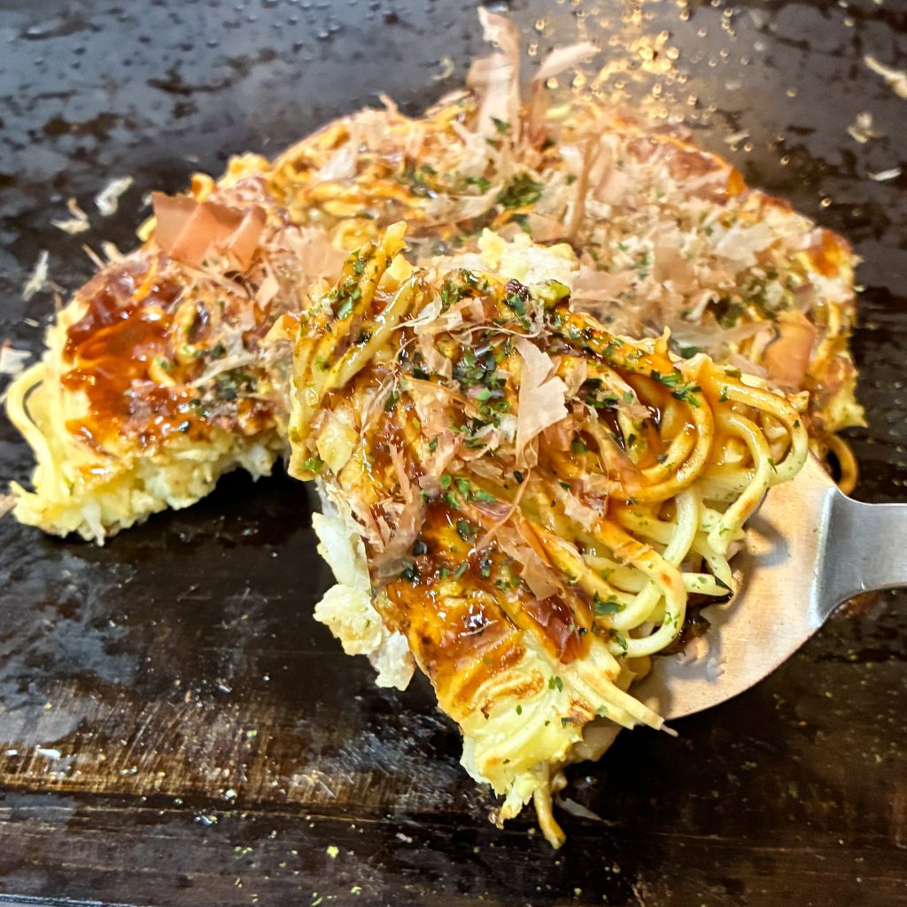 ふんわりと柔らかいお好み焼き!モダンの焼きそばはめっちゃモチモチしてます!
