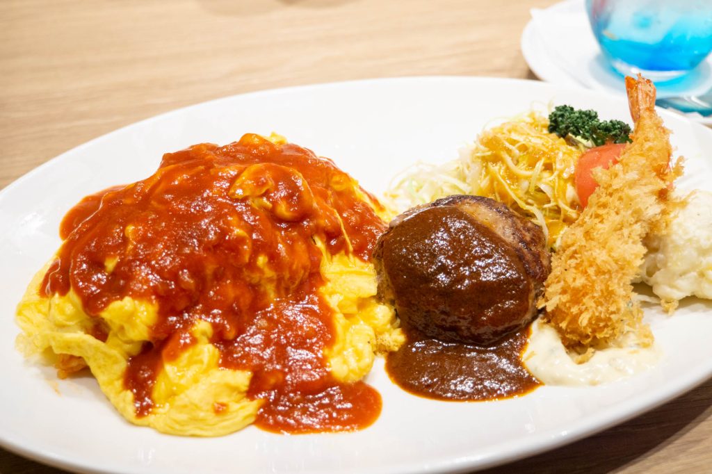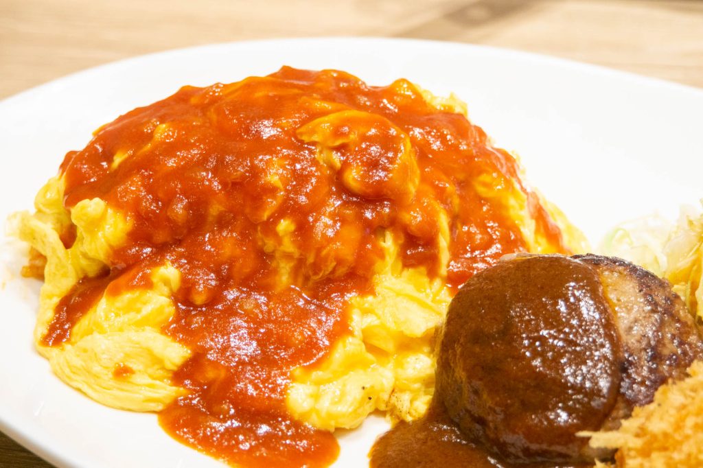 ふわとろオムライスはボリュームがあり、男性でも大満足!ハンバークもジューシーフルスロットル!!