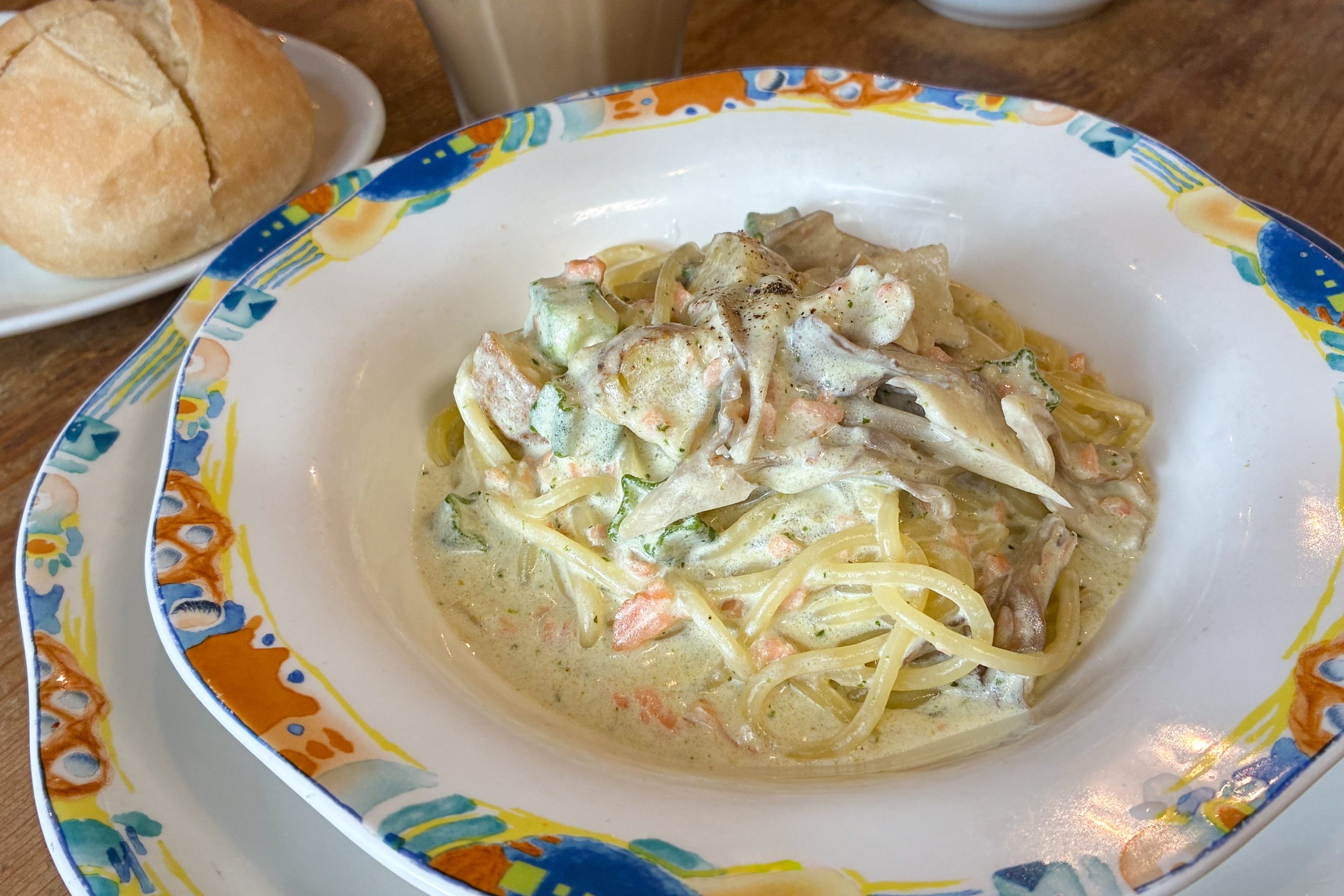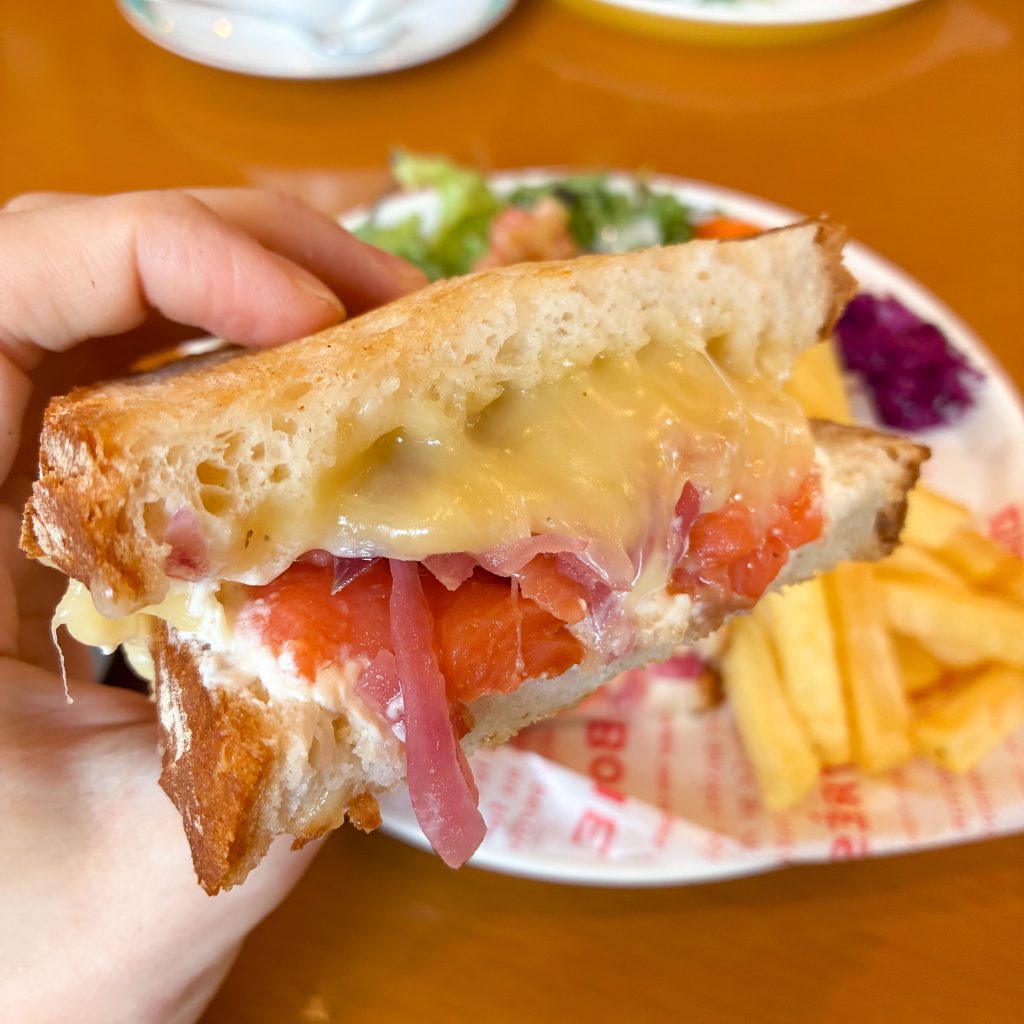 すごいボリューム!サーモンもチーズもたっぷりですね!