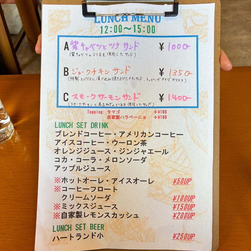 今回はランチメニューから「スモークサーモンサンド(1400円)」と「ジャークチキンサンド(1350円)」をチョイス!