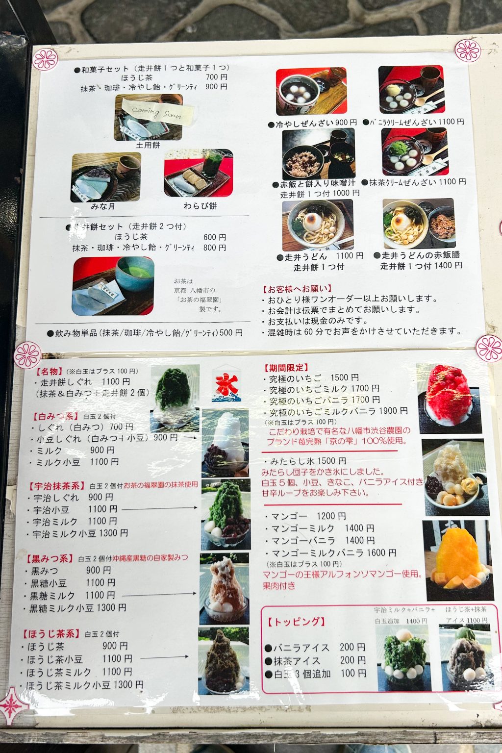 メニューをみると、和風〜フルーツまでいろいろな系統のかき氷がたくさん。