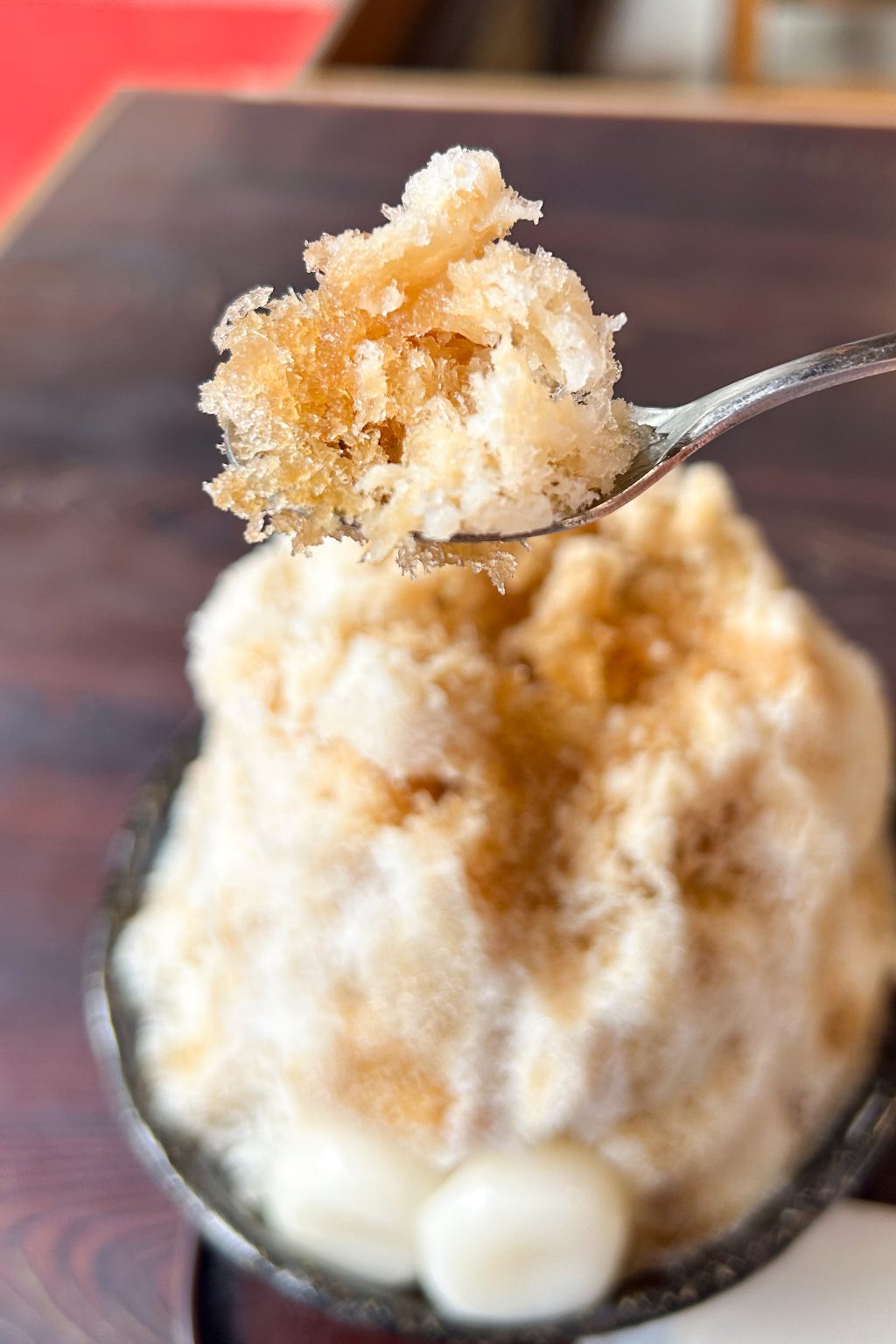 氷の下の下まで沖縄産黒糖の自家製黒蜜が渡っていて、最後までおいしいい。