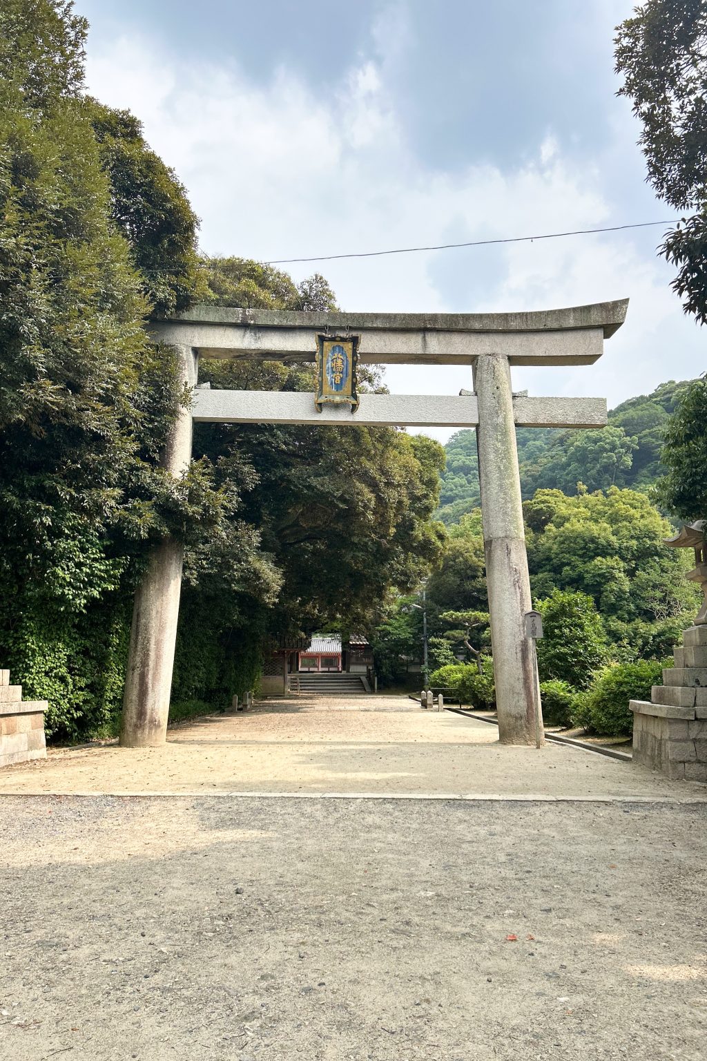 お店の左側には八幡宮一の鳥居が。「八」の字を拡大してみてください。はとになってます。