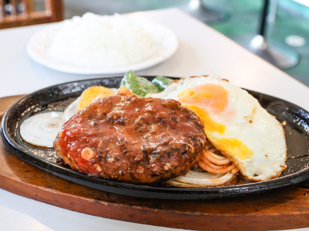 ハンバーグステーキは熱々の鉄板に乗って提供されるのでシズル感がすごい!