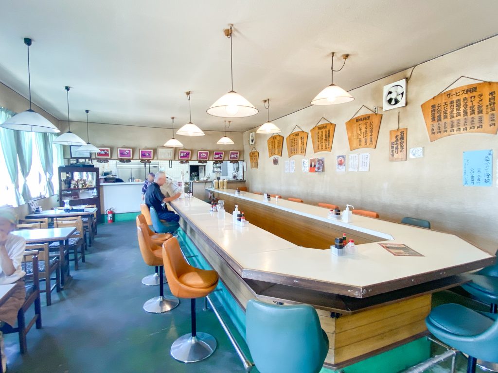 1946年に営業を始めたこちらは、U字のカウンターと木板に書かれたメニューがレトロを演出し、懐かしいドライブインの雰囲気を味わえますよ。