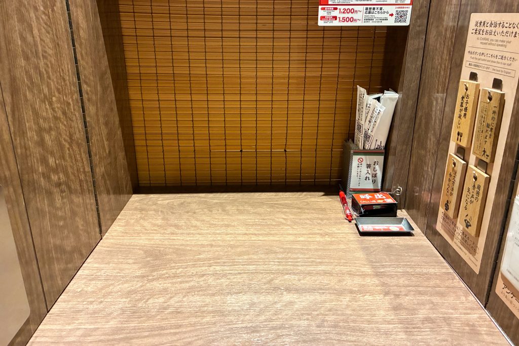 カーテンの向こうの店員さんにオーダー用紙を渡して、またこの状態。