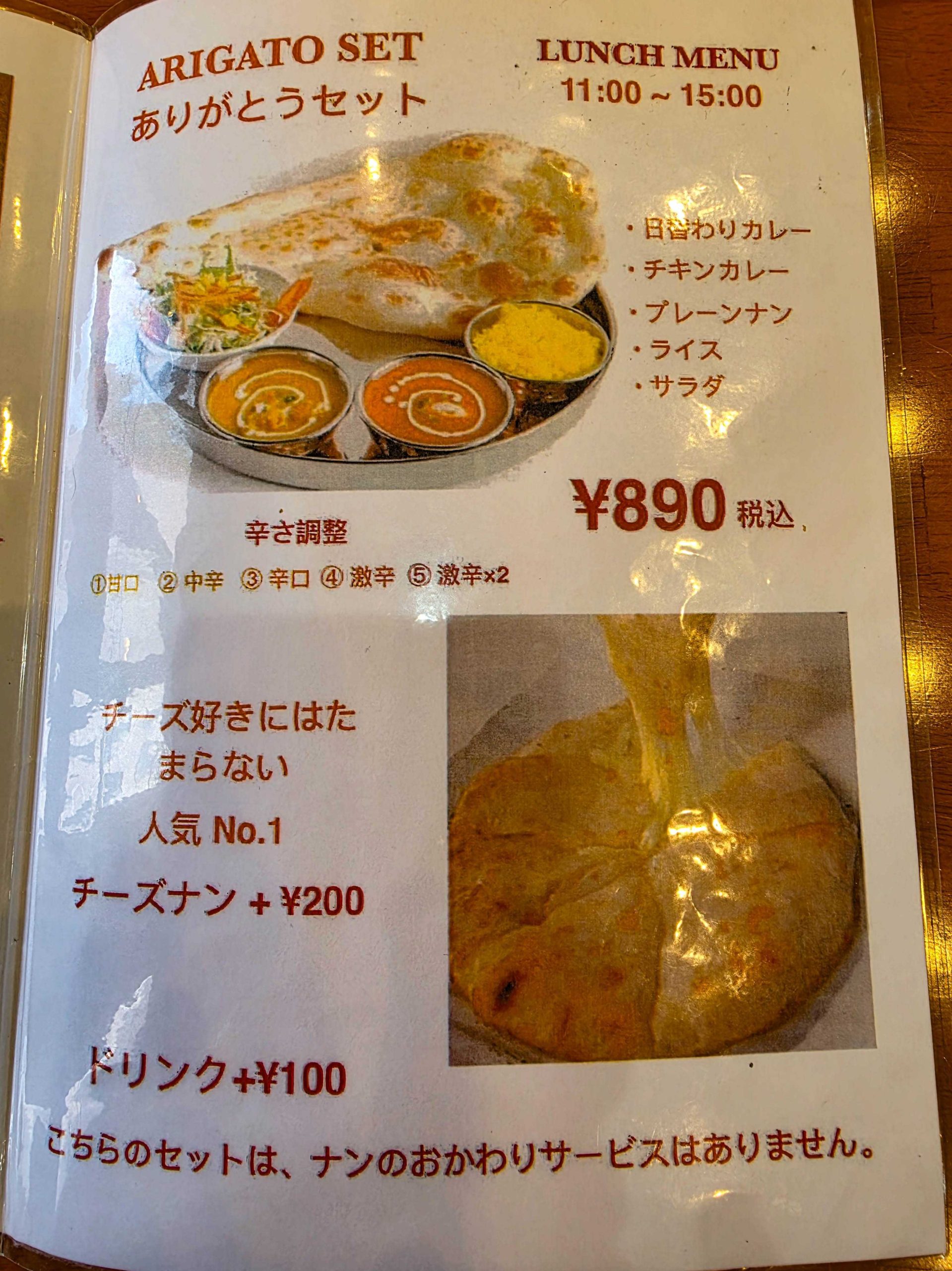 テイクアウトメニューに、なんと私の大好物パニールサーグを発見!これはもう再訪決定です。メニューにチキンティッカも見つけたので、次回はチキンティッカマサラもオーダーしてみたいな〜なんて妄想中。