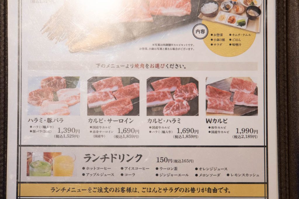 上記からお肉を選ぶといった感じ。今回私はカルビ・ハラミにしました!