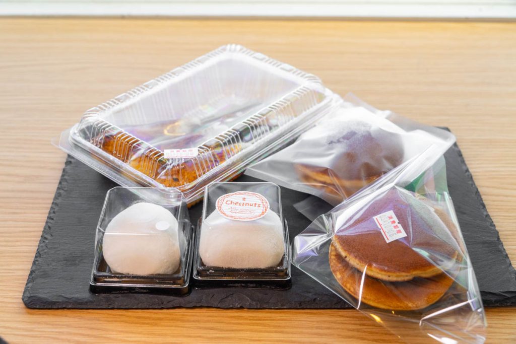 そうしてナガノパープル大福から、「和栗のモンブラン大福(237円)」「みたらし団子(119円×3の357円)」「朝焼きどら焼き(163円)」「生クリームどら焼き(183円)」などを購入。