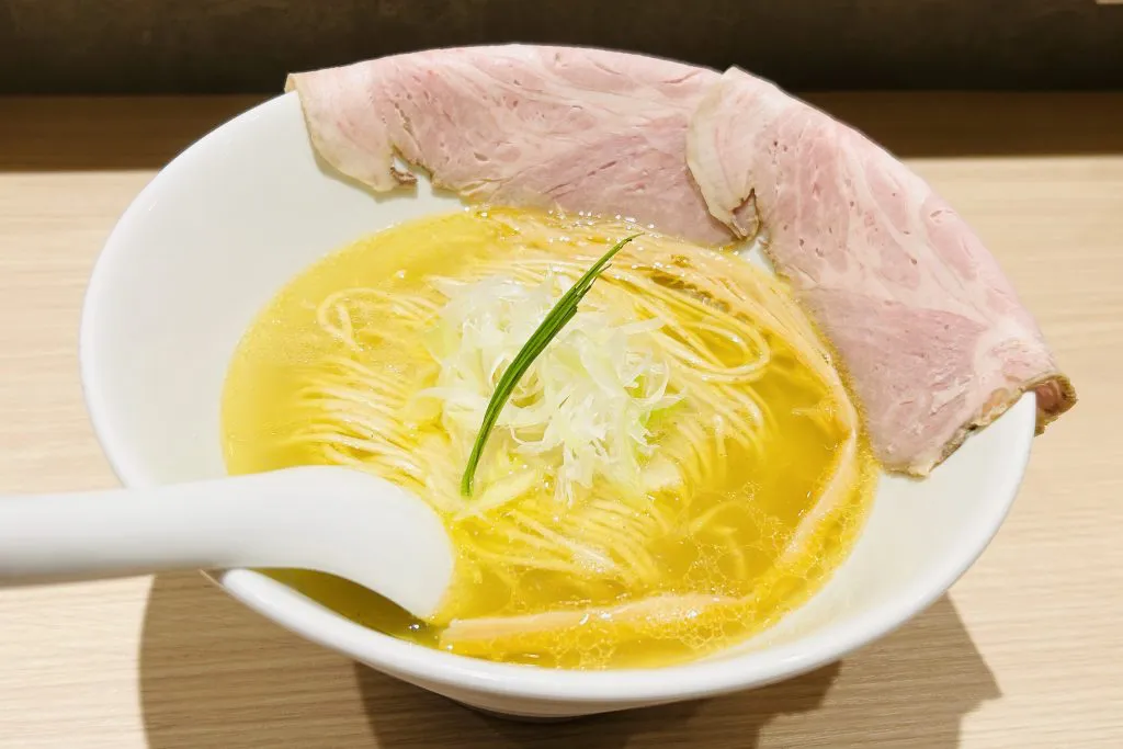 黄金色のスープに細麺が美しく泳ぐ、品のある一杯。