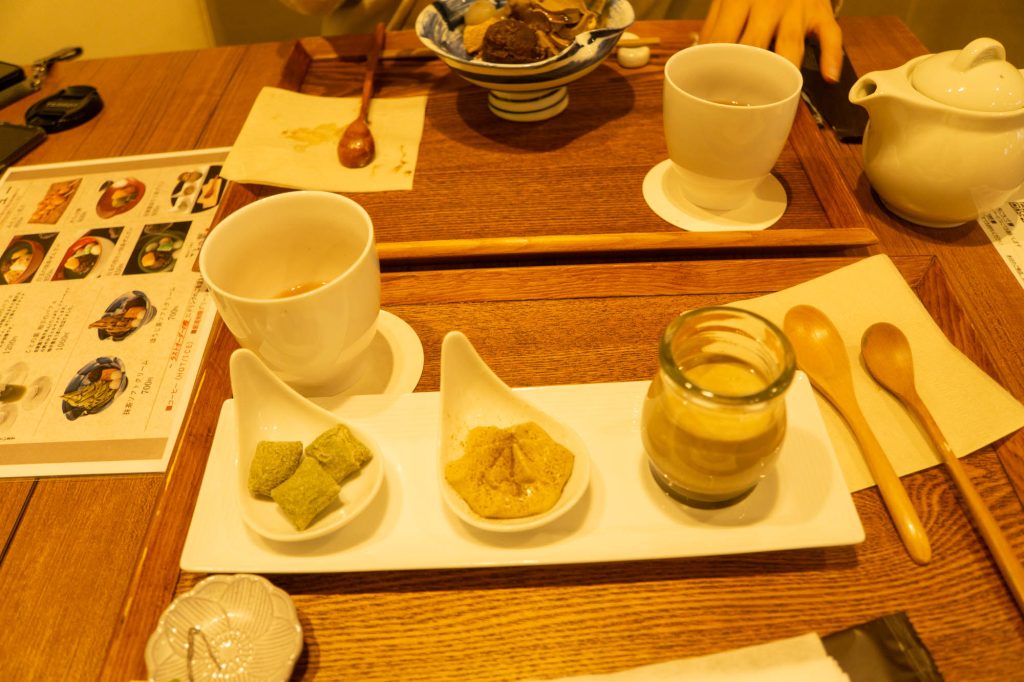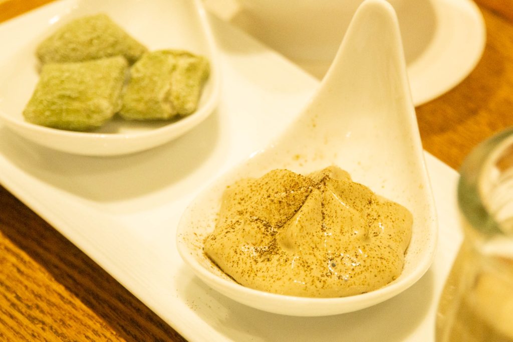 ほうじ茶ソフトクリームには白玉やあんこ、わらび餅も付いてきます。